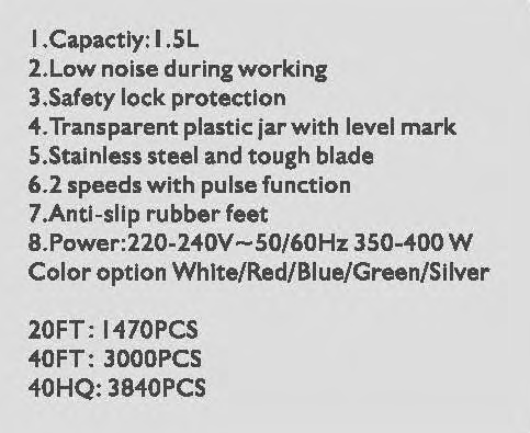 | JAR CAPACITY | 1.5L |